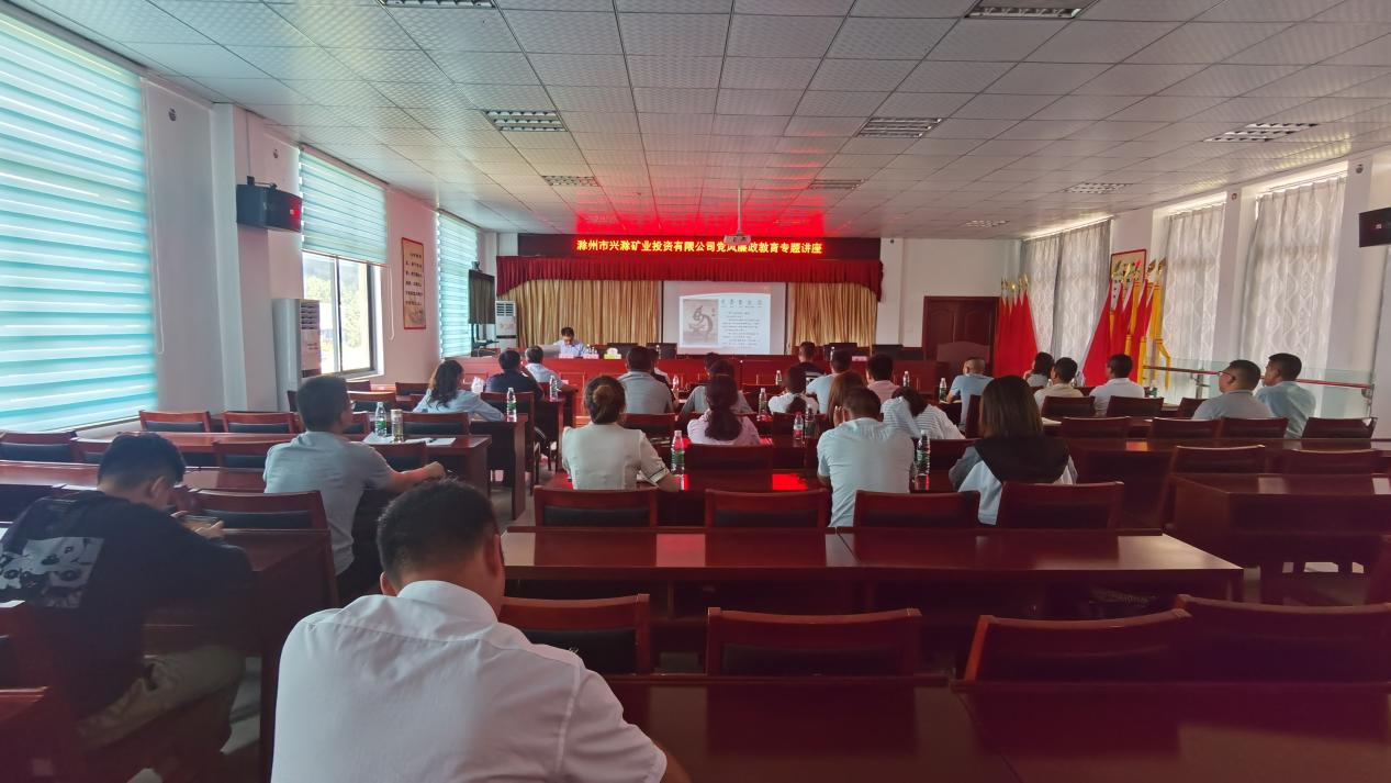 為進(jìn)一步推深做實黨史學(xué)習(xí)教育,切實加強(qiáng)公司黨風(fēng)廉政建設(shè)和反腐敗工作,促進(jìn)黨風(fēng)廉政教育在基層一線落地生根,7月23日,市礦投公司邀請市紀(jì)委監(jiān)委駐市財政局紀(jì)檢監(jiān)察組副組長張桂林赴興明礦業(yè)調(diào)研指導(dǎo)并作黨風(fēng)廉政教育專題講座。公司經(jīng)營層及相關(guān)工作人員約30余人聆聽了講座。