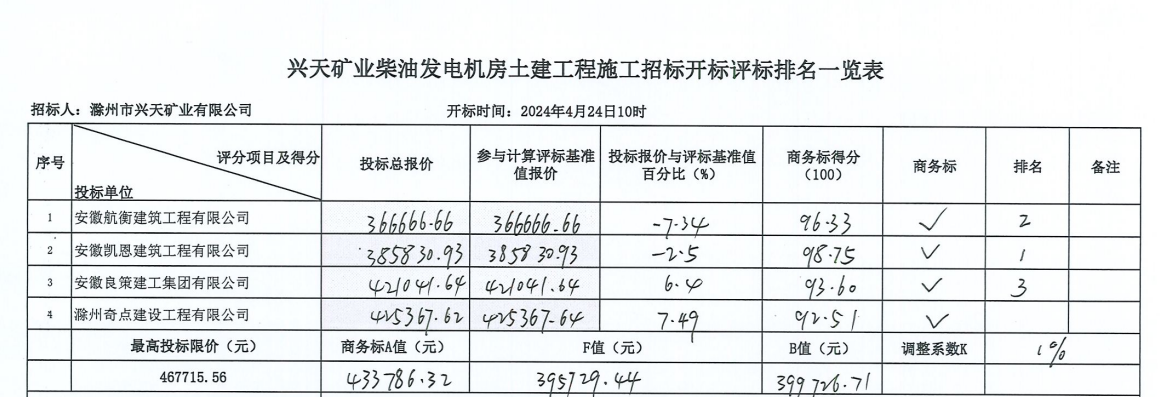 | 第一中標(biāo)候選人 | 投標(biāo)人名稱 | 安徽凱恩建筑工程有限公司 | |